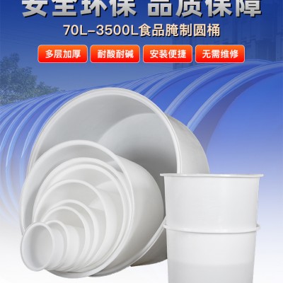 圆桶有着很好的耐腐蚀性,耐酸碱性,作为食品腌制发酵是很好的容器。耐撞耐磨。桶身表面内部光滑,再使用之前和之后都非常容易清洗。本产品还可以根据客户需求安装排水口,在使用或者清洗后可以将水排干。