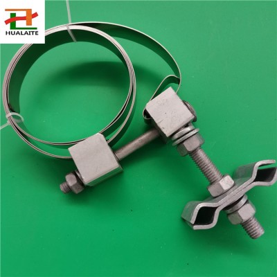 2、作用:将从电杆上引下或引上的光缆紧固在电杆上,使其不能晃动,以避免光缆的磨损。