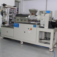 (1)主机减速箱采用专用减速箱,可以承受大推力,喂料段装有副螺杆, 增强喂料,并且运转噪音低,转速可精密调节。料筒采用风机一体式陶瓷加热器, 使用 PLC 精密设定并控制温度,具有升温快、精度高等特点。