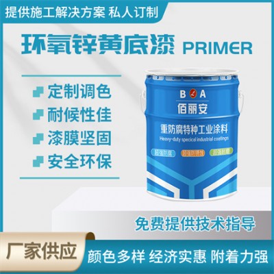 环氧锌黄底漆为双组份自干型油漆,组份一是由环氧树脂、颜填料、溶剂组成,组分二是固化剂。环氧锌黄底漆是不锈钢油漆,铝合金油漆,有色金属油漆涂装的常用底漆,环氧锌黄底漆对于有色金属表面、轻金属表面有良好的附着力,可与各色、金属色双组份面漆配套涂装。