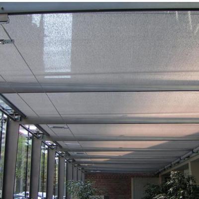 FSS电动天幕帘即单电机弹性机构天幕帘,该系统专为水平或倾斜遮阳系统而设计,适合于水平、倾斜或弯曲的玻璃天棚。主要由管状电机和弹性张力系统组成,面料一直经受张力。在弹簧收放过程中面料始终保持平挺。适应于中小型玻璃采光顶遮阳系统。