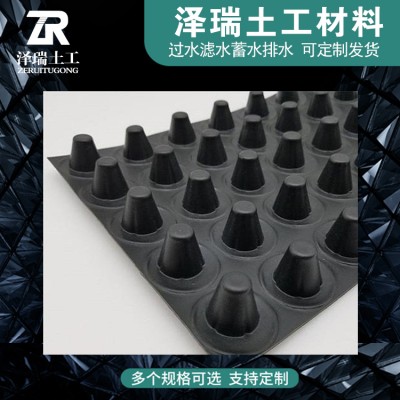 塑料排水板具有排水、蓄水、隔热、防潮、防水层柔性保护等功能。抗压强度高、化学性能稳定、耐酸碱、抗冲击。凸台之间的空隙大小不同,决定了不同的排水能力和厚度,可满足不同工程的需求。施工方便:塑料凸台 之间的间距准确统一,边沿凸台之间的连接采用搭接方式易 套接。边沿连接边同时设有凸台扣接与热焊接,可保证塑料防护排水板的连接质量。