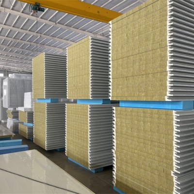 1)密封性能 :聚氨酯双侧封岩棉夹芯板采用了流水线生产工艺,从而利用了聚氨酯产品优异的防水性克服了岩棉易吸水潮解的缺点,在物理性能上有效延长了产品的使用时间。
