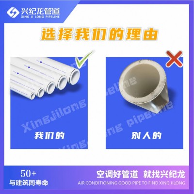 外层铝合金:外层铝合金层采用6063合金无缝铝管,颜色为白色,表面采用高温口喷涂氟碳树脂材料,使外层铝管有了较强的硬度且提高了铝合金管耐酸碱、耐腐蚀性能,与建筑墙体颜色一致,不易褪色。内层PE-RT材料:与兴纪龙牌PE-RT产品材料特性相同。