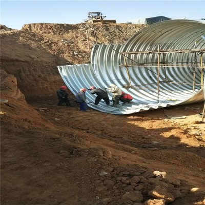整装钢波纹管涵组装大致分三步,根据涵洞的实际情况排放管涵。安装的时候从一测排放一根管,但是要使管子中心和基础纵向中心线是平行的,同样的再把另一根管放置jiu位,当两根管相邻法兰盘间距为3-5cm时,用小撬棍对准法兰上的螺丝孔,使其两根管法兰上的螺栓孔对正,这个时候从后放的管子另一端用撬杠来撬动管节,使其纵向平移,目的是让两个法兰间距保持在2cm左右,然后全部穿上螺栓,但此时还不需要紧固,开始镶嵌shimian盘根,但是镶嵌的时候由于现场地势原因,有时相邻两法兰间间距太小,这时需用手锤、凿子把间距凿开大约1cm的缝隙,用螺丝刀把盘根镶嵌垫在两法兰之间。有时管子顶部两法兰间距较大,这时需用绑丝把盘根绑在螺栓上固定好然后人工开始对称锁紧螺丝,直至从外观看两法兰间距有2-5mm的缝隙即可。这是才需紧固好螺栓,管涵安装完成,以此类推安装剩余管节。待整道涵洞的管涵安装完场后再用千斤顶校正,使其中心在所规定的中心线上即可。