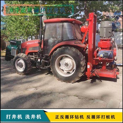 漯河临颍县华豫机械厂生产的,拖拉机改正反循环钻机,拖拉机可以选全新或者二手的,一般选用100马力的,可以使用三相电或者发电机,发电机一般是前置的,可以当做配重;
