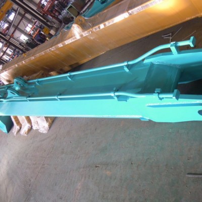 加长臂是一种为了拓展挖掘机工作范围的根据工况的要求而特殊设计制造的一组挖掘机前端工作装置,其连接部分必须严格符合原有挖掘机的连接尺寸以便于设备的安装使用。