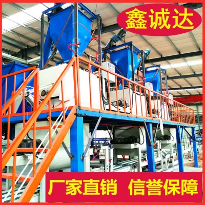 1.自动制板机: 本机采用自动化多道辊压、布网、铺无纺布制板,一次成型,制板速度快,板材料光滑平整,规格任意调整,厚薄均匀,本机在砂浆状态下,上下按顺序布料布网,同机实现复合制作与EPS聚苯板或XPS挤塑板复合一次性成型,并在复合板里面形成砂浆网状立体联接结构。采用的技术工艺,不仅是生产效率成倍提高,制板成本大幅降低,而且提高了保温板的综合质量,机械强度和面层的粘结牢度,从根本上克服了传统聚苯板和挤塑板现场施工造成的重复劳动复杂工序、及粘结不牢固、施工成本高等缺点