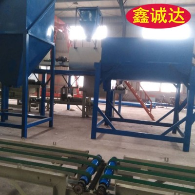 2)复合保温模板生产设备复合保温模板成型设备主要由电子计量装置,干粉砂浆搅拌机,料浆搅拌机,工作抬架,抹平装置,传送设备及切割机等组成。干粉砂浆搅拌机,料浆搅拌机采用自动配料,电子计量,自动化程度高,计量准确;成型设备具有结构设计合理,生产操作方便,成型周期短,生产效率高,产品质量好等特点。