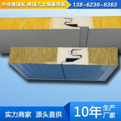 横铺板是由各种材质的金属板作为面板,填充防火保温材料,通过智能化专用设备经过加热、粘合、固化一次成型的集保温、节能、装饰与一体的多功能外墙建筑板材。该板材工厂化生产,质量稳定,施工方便,一次操作完成,施工周期短,效率高。减少湿作业。表面层可以根据实际要求设计成各种花色及图形,美观大气,既可保温,又可装饰。特别适用于住宅、工业、公共建筑的外墙保温工程及现有建筑的节能改造,大幅度降低能耗。该款板材宽度及厚度可以根据使用要求定制,芯材层除了岩棉以外也可以更换玻璃棉、聚氨酯等不同的保温材料,满足不同的建筑物需求。