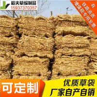 草袋又叫稻草袋是以水稻秸秆为原料用简易草袋机,以5mm草绳为经,水稻秸秆为纬交叉编织拧边而成的草制品。草袋品种分为:小草袋,大草袋,小缝边草袋,大缝边草袋四种类型。草袋的用处很多,通途也很广,草袋可以包装物品也可以当袋子用装物品,主要作为防洪草袋用,用来建设堤坝防洪防汛,也可以用到工厂包装一些铁器产品或机械设备。