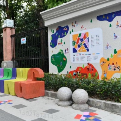 小区内的字母坐凳、让来来往往的行人走走停停、在快节奏的生活里让人们可以坐下欣赏一下小区的风景、感受一下这里居住人的生活环境,字母坐凳作为景观点缀的同时也方便了居民。