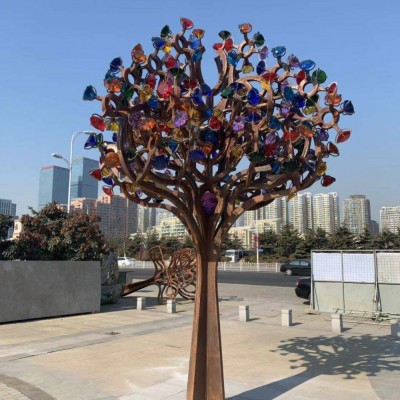 夜景灯光木棉树,不锈钢焊接树枝树杈,钻石镶嵌以作树叶,排序不同的钻石组合的心形树冠,不同颜色的钻石加以灯光,在夜景的衬托下钻石亮出不同的色彩,整棵树都亮了起来,引人注目,是广场景观很好的选择。