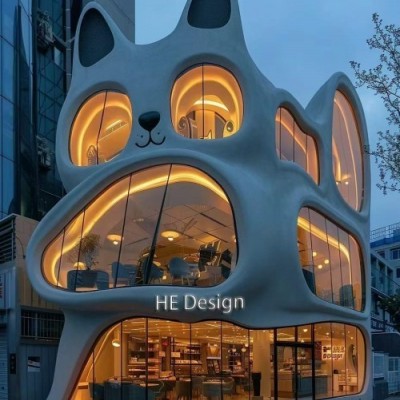 波斯猫建筑雕塑以猫咪的卡爱形象做造型,猫脊背为实体建筑成为整个建筑的承重、猫眼为窗、猫腹为门,配上猫鼻和长长的猫须,让猫咪的表情丰富多样,在城市广场夜晚的灯光开启中,明亮而夺目,是商业建筑的核心,专卖店展示作品的好选择。