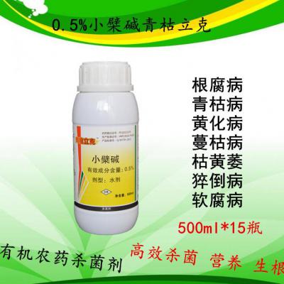 青枯立克:中药制剂,真通杀,双向传导能力强,具有杀菌、抑菌、促进生根等功效。内含杀菌成分(绿原酸、生物碱等)及营养复壮成分(氨基酸、多糖等),能杀菌、抑菌,调理内循环,提高,增强抗病能力,修复伤口,减少病菌侵入途径等作用,同时具有补充营养、辅助生根、提苗快、长势好等作用,连续使用无抗药性,任何时期使用50倍液以上对作物安全。
