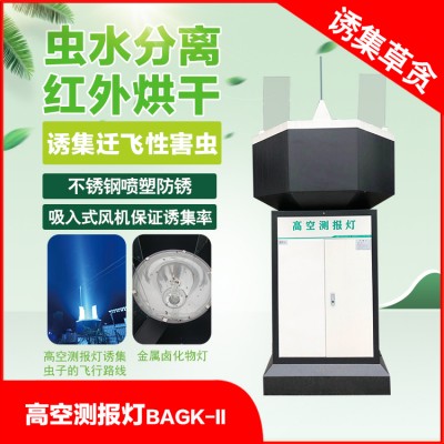 在无人监管的情况下,能自动完成诱虫、杀虫、收集、分装等系统作业。该测报灯通过虫体高温处理,存放,直观的对昆虫的发生、发展进行观测、分析和预测,为农业现代化提供服务,满足虫情测报、采集标本的需要。主要诱捕迁飞性害虫(草地贪夜蛾、稻纵卷叶螟、稻飞虱、草地螟、小地老虎、黏虫、棉铃虫等)。
