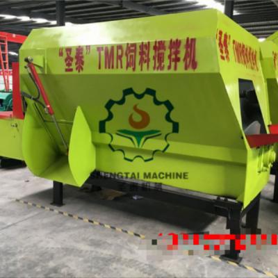 全混合日粮搅拌机主要有一个或两个绞龙组成,螺旋绞龙分为左旋和右旋。在混切搅拌时,物料从箱体两端各个方位同时向搅拌机中间位置旋切搅拌。绞龙螺旋体上每个螺旋导程装有动刀片,与饲料搅拌机中心线位置上的固定齿作切割工作,将通过的各种纤维性草料,秸秆进行切割搅拌,从而达到粉碎混合均匀的全混合日粮喂养效果。 青贮饲料搅拌机 tmr搅拌机价格