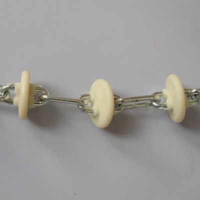 塞片链条主要用于输料管内,通过主机带动链条输送饲料,是自动化养猪设备中猪场自动化料线里用于运输饲料的主要配件。本品采用高强度低碳合金材料链条,拉伸强度大,延展率低,可承受更大拉力,塞片选用 纯原料尼龙一次注塑而成,抗磨性好,拉力大,使用寿命长;采用满环注塑,有效的避免了塞片注塑部分与链条之间滑动脱落。