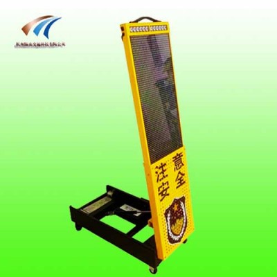 本设备是一种具有警示屏、LED文字显示、语音播放及警示灯于一体的安全警示防护设备。语音播报和文字信息提示同步进行,可视距离远,警示效果好等特点。有效起到实时路况信息提示、预警等功能,同时提高路面行驶车辆的安全驾驶。主要应用于事故现场,卡点,酒驾检查,边防卡点,大型会议节点,以及各种突发事故现场。