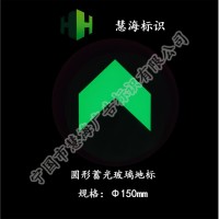 站厅疏散指示安装在地铁站厅的地面通道处,从屏蔽门到楼梯出口都必须安装,不能间断。不锈钢站厅疏散指示箭头的厚度一般都在是用的2mm,有些城市用的是3mm厚度。但是目前城市中用的较多的是一种圆形蓄光玻璃指示标识,采用钢圈外径150mm,底座直径142mmc尺寸。