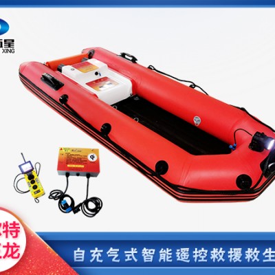 “瓦er特.霸王龙”自展式救生舟(救生ting)是一款可远程遥控操作的智能型水域、水上搜救机器人,用于水域救援时对落水人员的快速施救,救援人员可直接驾驶或者在岸上通过手持遥控控制站操作该智能救生舟进行施救。 可选配搭载救生衣、安全头盔、防水无障碍通话对讲 机、水面漂浮绳等安全配套器材;专门应用于我国应急救援、防汛救灾、水域抢险、洪涝灾害救援以及水库、河流、海边、激流等场景中的落水快速救援。