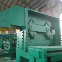 首先将带钢卷用行车吊至上卷车的支承辊上,行走送至开卷机中心,由左右锥头将钢卷夹紧,并可通过操作按钮将钢卷准确移至所要求的递送线中心,然后操作铲刀靠紧钢卷,启动支承辊电机使钢卷旋转,在铲刀的配合下将带钢头打开,并初步直头后送往夹送矫平机。带头进入夹送辊后,夹送辊压下并将带钢向前送进,通过矫平辊将带钢头尾矫平,带钢继续向前,由一对立辊保证带钢处于递送中心线上,经保证带钢的边缘整齐,消除带钢边缘不齐对成型的影响。之后带钢进入递送机,递送机为螺焊机组的总动力源,用于产生成型力及克服各种阻力,如开卷阻力,矫平阻力,成型阻力等,将带钢送入成型器,通过成型器的1#、2#、3#成型辊强制钢板变形形成钢管,通过4#、5#、6#、成型辊对初步成型的钢管强制定径产生符合尺寸规格的螺旋管,在成型的同时将互相接触的两个边缘,即螺旋管产生的缝隙处,通过埋弧焊机分别从内壁和外壁进行焊接形成螺旋焊管,在后桥上设有自动定尺及钢管切割装置,在生产过程中将钢管按要求的长度切断、拨出,保证机组生产的连续进行。