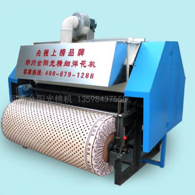 3、多功能精细弹花机:本机共有九道刺辊,可梳理棉花、丝棉、化纤、毛线、PP棉、羊毛、驼绒等多种原料,经本机九道刺辊的梳理后,由斩刀剥离后卷上木桶即成被胎、弹性好拉力强,是做无网被胎的。可做太空被、踏花被、九孔被等。