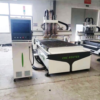 家具制造技术的进步与人们的家具装饰需求息息相关,特别是随着现代人个性化需求的提升,家具定制风靡一时。全屋定制成为很多人选择的装修方式,这促使加工设备要向着多功能、高效率方向发展。四工序数控开料机虽然较高,但加工功能单一,其搭载的四主轴仅能加工柜体等工件,面对柜门等需要复杂雕刻开料工件,其功能则捉襟见肘,无法满足。所以直排换刀数控开料机应运而生。