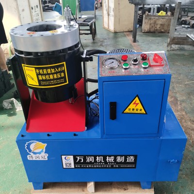 压管机是在液压力作用下使金属接头产生变形,从而平稳、地扣压在胶管上的设备;如(液压机械、注塑机、挖机、装载机、吊机、汽车空调管),是液压机械厂,挖机维修点的设备,是一款性能稳定,简单易用,经济型的压管机.性能和加工方法与其它同类产品相比,该机具有:采用八瓣式条宽等分、间隔均匀单斜面模块,保证机械移动平稳、回程快速;.装模结构利用接钩式原理,更换模具简单方便, 调较非常方便,模具扣压松紧度可任意按需要调节;连接质量好、扣压速度快、生产效率高、操作简单、维修方便、、节能等特点。因其扣压力大,各种不同直径的胶管接头均能一次扣压成型,扣压后的接头外套光滑精美,抗压抗拉能力强,是胶管接头总成厂家理想的生产设备,也是有关工程单位设备维修的工具。