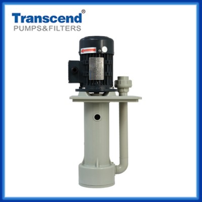耐酸碱立式泵采用品牌电机,泵体采用优质RPP、CFRPP、CPVC、PVDF材料注塑成型,具有耐高温、耐腐蚀、耐酸碱之特性,使用范围非常广泛,如蚀刻线、废水处理设备、洗涤塔、高温或内含结晶之化学液体、化学搅拌槽或反应槽内之各类液体循环输送作业,亦可作为热交换循环使用及配合过滤器之过滤操作。