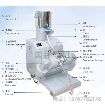 4、全机采用整机一体化结构,并可随时移动,整机附件齐全(配:储水桶,水桶支架,橡胶管,止水夹),用户插上电源插头即可工作。