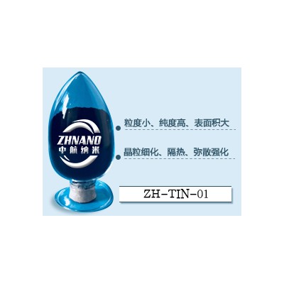 纳米氮化钛(TiN)通过气溶胶烧蚀法制备,纯度高,粒径小,分布均匀,比表面积大,表面活性高,氮量高,耐高温,抗氧化,硬度高,优异的吸收红外线性能(80%以上),紫外光屏蔽大于85%以上,可以应用在隔热涂料及汽车陶瓷膜上面,起到隔热及控温作用。该材料具有良好的导电性,可用作熔盐电解的电极和电触头等导电材料,用于增韧陶瓷以及耐高温结构陶瓷效果非常之好。