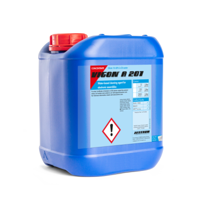 VIGON® A 201是专为喷淋式清洗工艺而开发的水基清洗液,可以有效清除细小间隙中的助焊剂残留物,例如,元器件底部间隙较低的清洗应用。无需使用任何添加剂,VIGON® A 201仍然能够保证清洗之后的焊点保持光亮。 此外,VIGON® A 201也被推荐用于倒装芯片,CMOS,和功率LED 等器件的助焊剂清洗工艺。