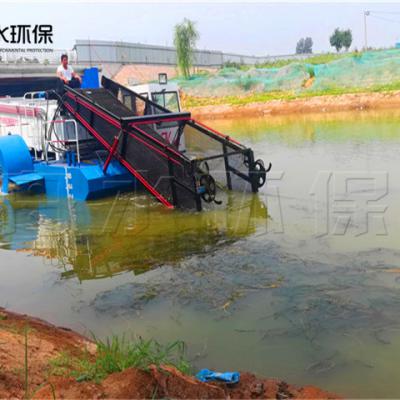 舟水全自动水草收割船能有效的收集湖面、河道、人工湖水域丛生的水草及水面漂浮物,所有机械联动采用全液压驱动,明轮、割台、收割器和输送链可连续工作,仅需一人操作.全自动割草船装载量打,且在水域能够原地回转,大大减少了低头距离,并加装夜间作业照明系统,能配合紧急任务的夜间作业要求,仅需一人操作。