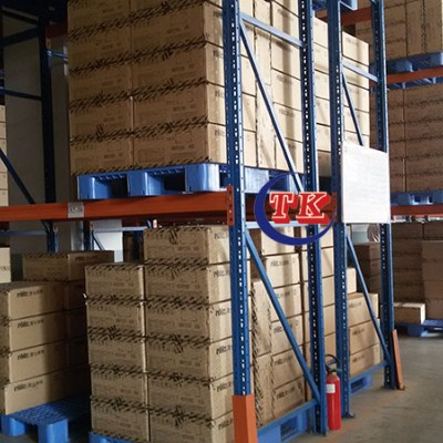 托盘货架是指摆放时用托盘作为容器存储货物的货架。所以与一般货架相比,托盘货架它主要是摆放托盘,而货物则是放置存储在托盘上。在货架领域,一般我们将托盘货架基本等于同于重型货架。因此也常称为重型货架。然而因为货架上只需要支持托盘,因此可以不需要层板,每层只需要横梁撑托住托盘即可,因此托盘货架又经常被称为横梁式货架。