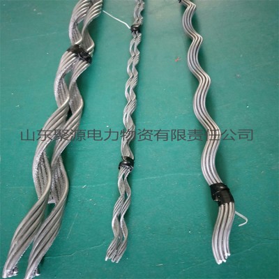 特点:1.全张力接续条的握紧力可达绞线的额定断裂张力,导电性优于等长钢芯铝绞线;2.全张力接续条可以恢复钢芯铝绞线的断裂张力和的导电性。 使用说明: 1.无论导线新旧与否,必须将钢芯及铝绞线安装接续条的长度范围内表面彻底打磨,使表面光亮和干净后,在表面立即涂上一层高质量,与导线匹配的导电脂,然后开始安装;2.当接续条的中点和导线上损坏点对齐安装时,全张力接续条的尾端距离已安装好的预绞式护线条或预绞式短护线条的尾端不小于150mm,只有导线上的损坏点在支撑点或在近损坏点之外,才可以采用此种接续条,并发挥接续条的上述维修技能;3.全张力接续条不能重复使用。