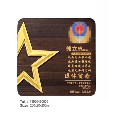 从警光荣金箔奖牌荣誉牌匾木托铜牌木质证书木牌颁奖牌