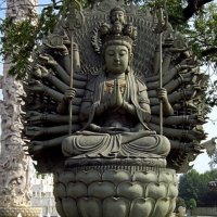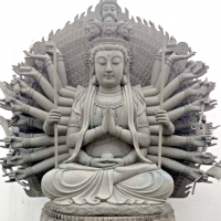 千手观音,又称千手千眼观世音、千眼千臂观世音等,是佛教六观音之一。她的形象通常为四十只手,每个手掌中有一眼睛,象征着她的千手千眼能遍护众生,指引人们走向正道。