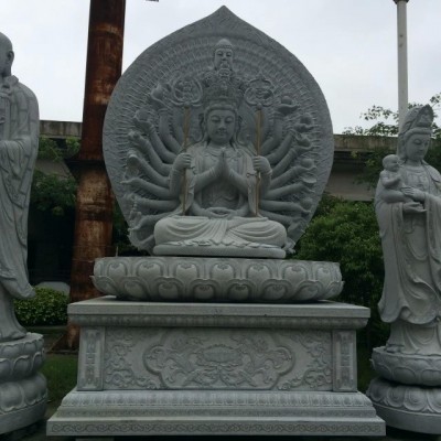 千手观音雕塑的形象被赋予了丰富的内涵和深刻的寓意,她的每一只手臂都代表着一种不同的救赎方式,而每一双眼睛则代表着对世间万物的洞察。这种形象不仅展示了观世音菩萨的慈悲心肠,也体现了佛教对于生命和宇宙的深刻理解。在中国各地的寺庙中,我们可以看到许多精美的千手观音雕像。这些雕像或站或坐,姿态各异,但都充满了庄严和神圣的气息。