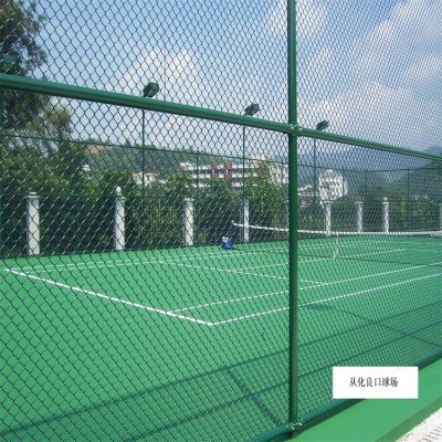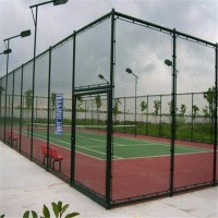 网球场围网表面处理:围网采用PE/PVC包塑丝,立柱、边框采用喷塑、浸塑处理。