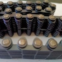 齿形链又称无声链(Silent Chain),属于传动链的一种形式。我国的标准为:GB/T10855-2003《齿形链和链轮》。齿形链是由一系列的齿链板和导板交替装配且销轴或组合的铰接元件连接组成,相邻节距间为铰连节。根据导向型式可分为:外导式齿形链、内导式齿形链和双内导齿形链.齿形链又称无声链,属于传动链的一种形式。齿形链是一种应用广泛的重要机械基础件,主要用在高速、重载、低噪音、大中心距的工况下,其传动性能优于齿形带传动、齿轮传动以及磙子链传动,以成为众多行业对传动形式之一,以啮合形式分可分为内啮合齿形链、外啮合齿形链和内外复合啮合齿形链,其中内外复合啮合齿形链的噪音小,应用也广泛。主要特点:1.噪音小 齿形链是通过工作链板与链轮齿的渐开线齿形进行啮合传递动力,与滚子链和套筒链相比其多边形效应明显降低,冲击小、运动平稳、啮合噪音较小。2.可靠性较高 齿形链的链节是多片式结构,当其中个别链片在工作中遭到破坏时并不影响整根链条的工作,使人们能够及时发现并更换,如需增加承载能力只需在宽度方向较小尺寸(增加链片排数)。3.运动精度高 齿形链各链节磨损伸长均匀,可保持较高的运动精度。齿形链条主要应用范围:齿形链主要应用在纺织机械和无心磨床,传送带机械设备。齿形链条的种类:CL06,CL08,CL10,CL12,CL16,CL20。根据导向分:内导的齿形链条和外导的齿形链条,内外复合的齿形链条