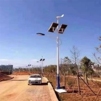 风光互补路灯是利用风能和太阳能进行供电的智能路灯,同时还兼具了风力发电和太阳能发电两者的优势,为城市街道路灯提供稳定的电源免除电缆铺线工程,不用大量供电设施建设;无需铺缆,无需大批量电气设备,省人力财力。根据不同的气候和环境配置不同型号的风力发电机,在有限的条件内达到风能利用。太阳能电池板采用转换率高的单晶硅太阳能电池板,提升太阳能的发电效率,当风源不足情况下,电池板因转换率不足导致充电不足,无法亮灯。风光互补路灯系统内主要的部件,起着对其他部件发号指令协同工作的主要作用,集光控亮灯、时控关灯、自动功率、自动泄荷、过充过放保护、性能稳定可靠。