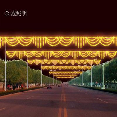 说明:新款LED街道亮化产品,街道装饰佳选择灯具,它采用多种颜色组合而成,红色加黄色是一种给人喜庆舒服的感觉,添加了城市的美感,浓浓的节日气氛,它采用直流低压供电方式,具有节电、安全、长寿命、免维护等特点。LED(LED单项模组、双向发光模组、特质双向发光灯带)做光源,具有色彩丰富、安全、节能、透视力强等特点,主要材质是铁制(焊接造型+烤漆+编制)或不锈钢制(焊接造型+打磨+编制)成各种艺术造型达到美化装饰效果;