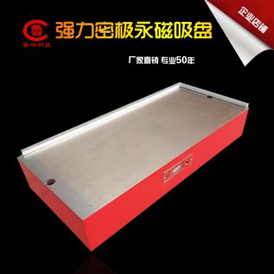 强力密极永磁吸盘适用于平面磨床,火花机、线切割机床。磁极间隙细密,磁力分布均匀,加工薄小工件时,效果明显。充、退磁时工何台面精密度无变化。面板经特殊处理,无渗漏,可防止切削液腐蚀,延长磁盘使用寿命,可长时间放在切削液中工作。六面精磨加工,在线切割机床上可垂直使用。