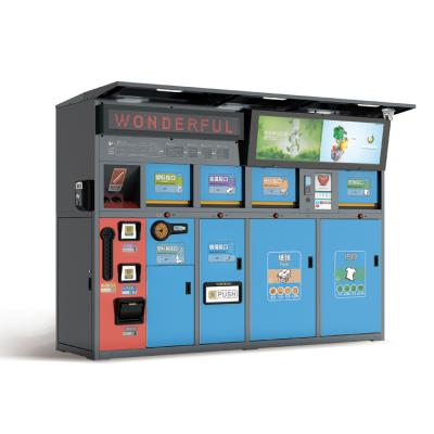 每个投口一侧设有预警指示灯,分别对应各个投口。当某个箱体内部垃圾桶满载,相应警示灯亮起,投口电机终止工作投口不可打开,产品本身智能系统可通过手机APP推送或预警信息;此时投口间液晶屏可显示警示信息。