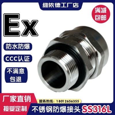 不锈钢防爆接头,是昆山维依德WISDOM品牌旗下主打产品之一,本产品采用304不锈钢精致而成,具有独特的防爆功能,隔爆等级EX DII BT4,防护等级IP68。我们的不锈钢防爆接头型号齐全,总有一款是适合您的,为了消除广大客户采购前的忧虑,我司特免费提供样品,让您在确认样品之后在进行采购,而且现在不锈钢防爆接头我司全部采用批发价格销售,欢迎咨询订购。