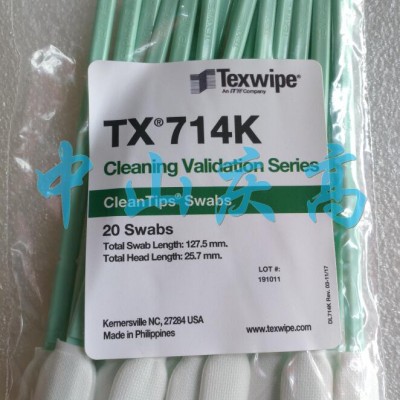 TEXWIPE棉签TX715 取样分析拭子 TX715扁平硬芯大头,洁净,吸水性好,适合擦拭稍大一点的平面,棉签杆豁口容易折断,洁净的棉签头尤其适合取样分析。 包装: 50支/小包, 2小包/大包,100支/包 棉签头材质:Alpha®双层聚酯布 棉签头宽度:12.7 mm 棉签头厚度:4.2 mm 棉签头长度:25.7 mm 棉签杆材质:聚B烯 棉签杆宽度:5.2 mm 棉签杆厚度:3.0 mm 棉签杆长度:101.8 mm 棉签整体长度:127.5 mm 棉签绑定方式:热塑 棉签杆颜色:绿色 特点:扁平硬芯大头,易握长杆,棉签杆豁口容易折断