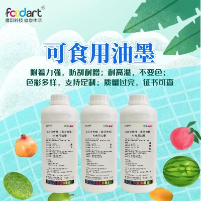 我们可食用油墨,所有成分均可食用,是一种可以吃的油墨,我们可食用油墨主要搭配各类印字机,比如苹果印字机、M豆糖果印字机以及各类柔版印刷机,我们可食用油墨在苹果表面印字,M豆表面印字以及在可食性的蛋白肠衣、阿胶上印字等,可以和食品一起吃下去,安全健康。