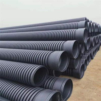 安阳dn800钢带增强波纹管厂家是以聚乙烯为内外层基体材料,以表面涂敷高性能黏接树脂、并弯曲成型的钢带波形体为主要支撑结构,在生产线上通过缠绕、挤塑复合成整体的螺旋波纹管材。该产品将钢材的高刚度、高强度和塑料的耐腐蚀、耐磨损和柔韧性等优良性结合起来,不仅可以使管材达到一定级别环刚度,而且还解决了钢材的耐腐蚀问题,弥补了较大直径全塑料埋地排水管环刚度低的问题。