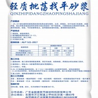 (4)JN-101轻质批荡砂浆材料:水(1:0.4)加水搅拌3-5分钟即可使用,材料在搅拌后2-3小时必须用完,没用完的材料不可加水二次搅拌再使用。施工后用靠尺和抹子使施工面垂直平整。